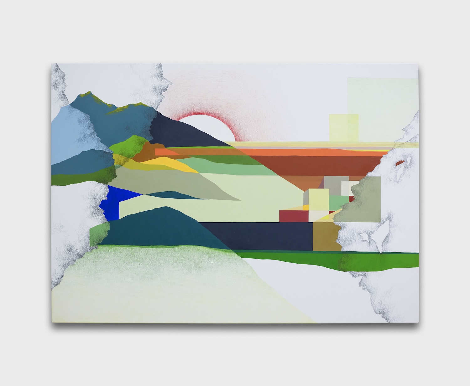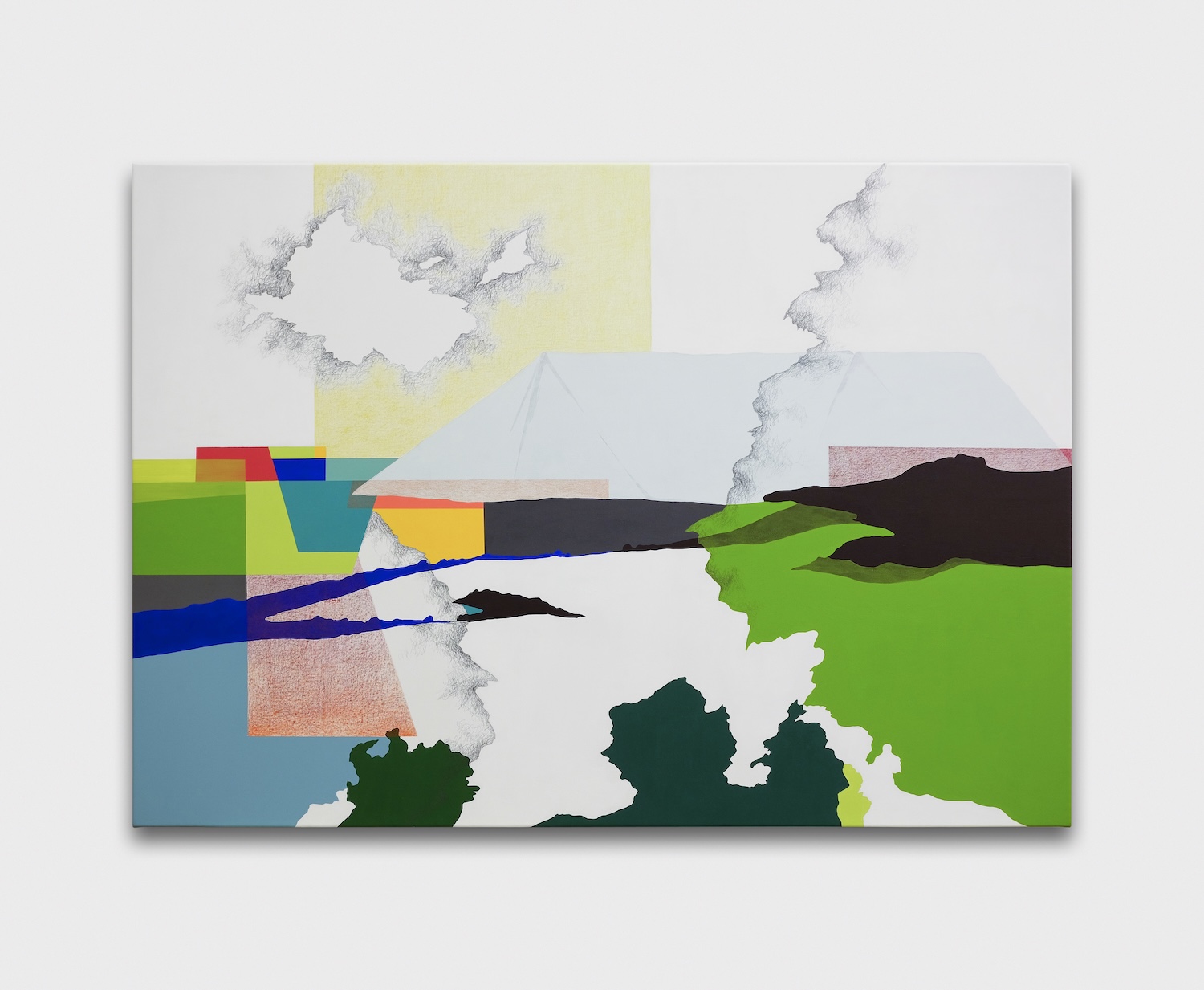 Alexandra Häberli, Geological Happiness - It’s all a question of perspective (Drôme), 2024, Acrylic, graphite, color pencil on canvas, 84 x 120 cm. Courtesy of the Artist and GOWEN. © Claude Cortinovis.