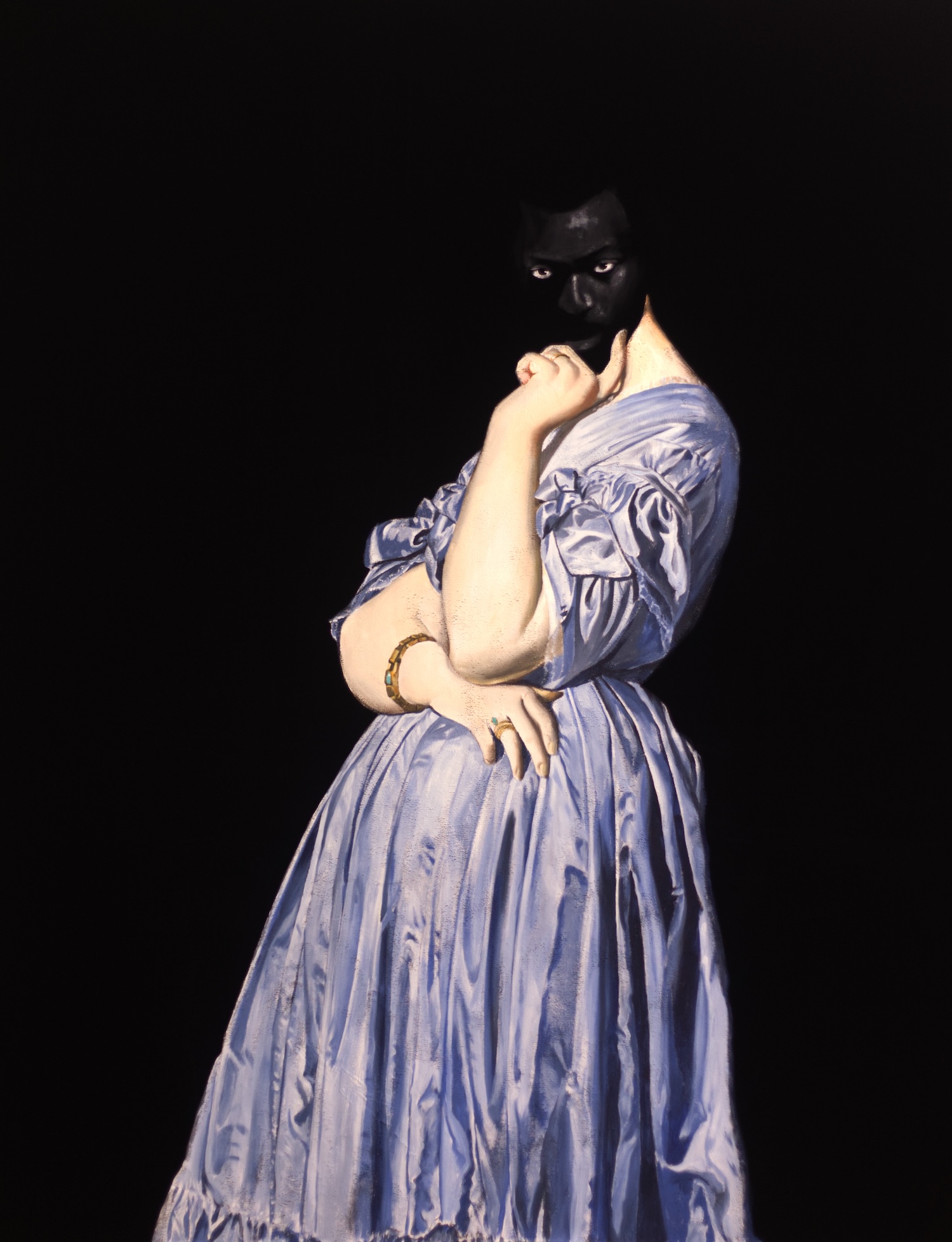 Roméo Mivekannin, La Baronne de Rothschild, 2025, Acrylic on velvet, 190 x 150 cm. Courtesy of The Artist and GOWEN.